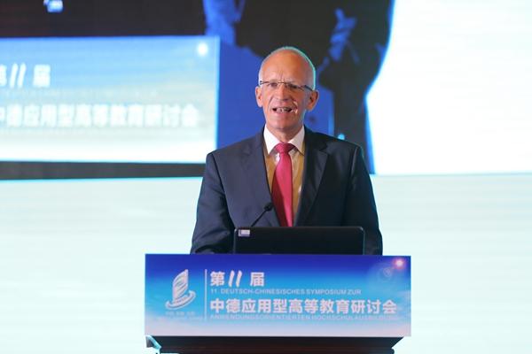 Herr Dr. Stephan Venzke, Sonderbeauftragter des niedersächsischen Ministeriums für Wissenschaft und Kultur, betonte, dass die Beziehung zwischen China und Deutschland tiefgehendsei und Deutschland großen Wert auf den Austausch mit China im Bildungsbereich lege. Viele chinesische Studierende in Niedersachsen hätten gute Leistungen. Er freute sich auf den Ausbau der Kooperation zwischen China und Deutschland im Hochschulbildungsbereich und das 12. Deutsch-Chinesische Symposium zur anwendungsorientierten Hochschulbildung.