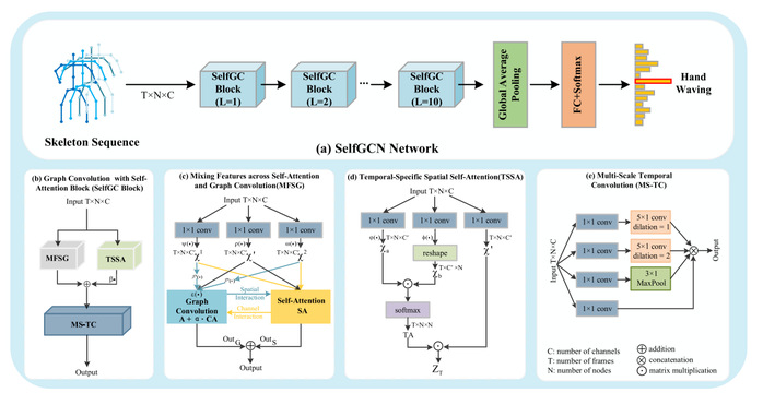 人工智能与大数据学院吴志泽团队在基于骨架数据的人体动作识别研究中取得重要进展,提出了一种结合图卷积网络(GCN)与自注意力机制(Self-Attention)的新方法。相关研究成果以“SelfGCN: Graph Convolution Network With Self-Attention for Skeleton-Based Action Recognition”为题,发表在国际顶级学术期刊《IEEE Transactions on Image Processing》上(DOI: 10.1109/TIP.2024.3433581)。吴志泽教授为论文第一作者,我校全职德籍教授汤卫思(Thomas Weise)为论文通讯作者,日韩欧美福利视频_黑人巨大人精品欧美三区_欧美成人另类人妖_欧美在线精品一区二区三区_欧美一区二区三区性视频_日韩精品欧美视频_性欧美极品xxxx欧美一区二区人工智能与大数据学院为论文第一完成单位。
