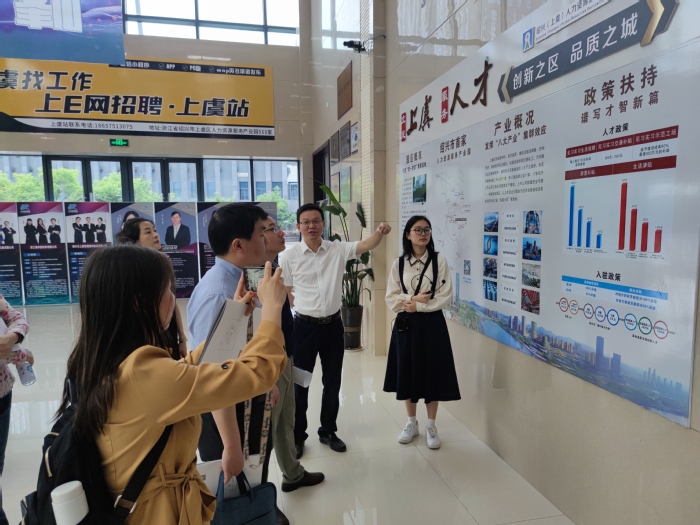 为推动我校就业工作长期稳定开展,抓好“六稳六保”首要工作,保障我校毕业生更加充分更高质量就业,5月10日至11日,校就业指导中心组织相关二级学院到浙江绍兴上虞区调研毕业生就业市场。能源材料与化工学院党委书记童玉松,先进制造学院党委书记杜娟,人工智能与大数据学院党委副书记储昭辉,学生处副处长、就业指导中心主任张应杰,副主任蒋虹、刘莹及部分毕业班辅导员参加了调研。