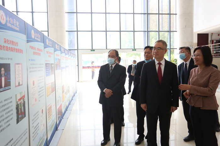 安徽省政府副秘书长、省政府政研室主任叶晓明,中共安徽省委教育工委副书记、省教育厅厅长赵振华,合肥市委常委、副市长路军,省外事办公室副主任王年宝,省政府办公厅副主任金宗顺,中共安徽省委教育工委委员、省教育厅副厅长张庚家,安徽大学党委书记蔡敬民等陪同参观。(党委宣传部)