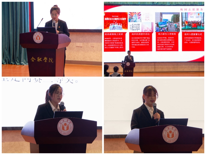 4月15日,第十七届“榜样学子”候选人风采展示在图书馆报告厅A厅举行。合肥学院原副院长、关工委常务副主任郑永红,校团委书记王玉,党委学生工作部副部长、学生处副处长许刚,党委宣传统战部老师徐毅,大学生创新创业教育中心老师王慧参加并担任评委。