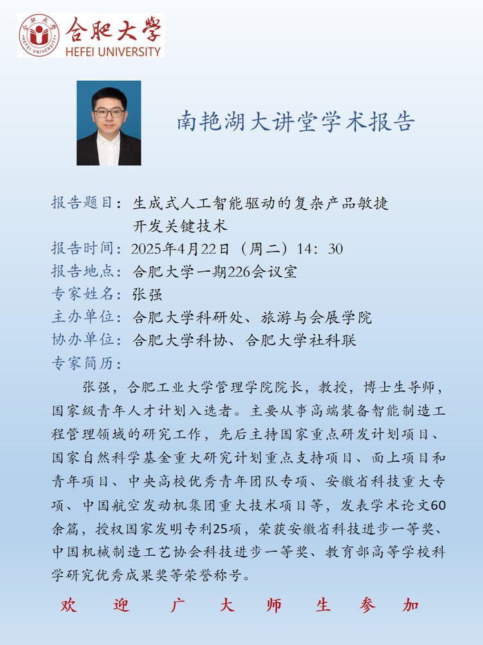 【南艳湖大讲堂】生成式人工智能驱动的复杂产品敏捷开发关键技术
