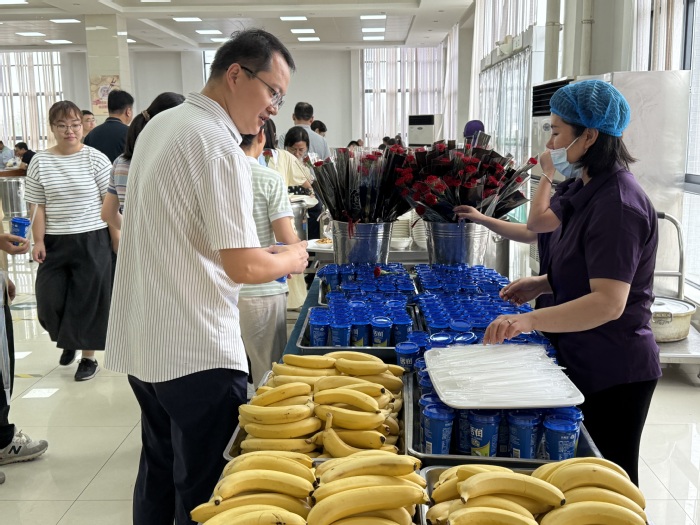为感念师恩、礼敬教师,校团委、后勤部门还组织策划了献礼教师节活动。展架前,不仅有团委自主设计的精美文创产品,还有创意DIY合影活动,记录下了老师们温暖的笑颜。教工食堂准备了鲜花、水果、饮品等赠予就餐教师,营造了浓厚节日氛围。