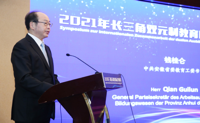 长三角双元制教育国际合作研讨会的召开,将进一步发挥安徽在中德合作、双元制协同培养人才领域的先行优势和先进经验,整合校企合作培养人才在应用型高等教育、高等及中等职业教育领域的资源,推进人才链、产业链、教育链、创新链有机统一和长三角一体化发展战略,服务新阶段现代化美好安徽建设。合肥学院将抓住发展机遇,持续深化双元制高等教育改革,大力推进专业、就业、产业“三业一体”,为省市高质量发展持续输送高素质人才。