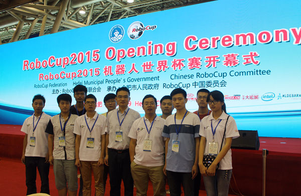 19RoboCup机器人世界杯19日在合肥开赛,来自美国、法国、日本、澳大利亚等47个国家和地区的2000多名选手参加该项赛事。我校卓越IT工程师俱乐部MT2015队”参加了此次世界杯机器人足球仿真2D项目的比赛。经过第一天的循环排位赛,我校代表队顺利晋级16。