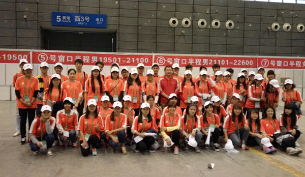 在此次活动中,我校志愿者主要负责选手检录、兴奋剂检测、喷淋、赛道检查、收容车及赛前物资发放等一系列志愿服务工作。为了比赛的顺利进行,我校志愿者于24日上午,在我校青年志愿者联合会的组织下,前往各个工作岗位进行排练,以保证比赛当天志愿工作的顺利开展。25日上午5点钟,我校1000多名志愿者在夜幕中随车前往各个服务站点提前为参赛者做好赛前准备。在赛道的起点处,有着这样一群志愿者,他们手拉手形成一道道人墙,避免参赛者向前涌动发生踩踏事故。在选手们踏入赛道后,他们又转为赛后服务小组,分布在各个工作岗位 。此次马拉松共有2万多名选手参加,场面尤为壮观,而我校志愿者也成了此次马拉松的一道道亮丽风景线。据35公里饮料站的志愿者透露,很多参赛选手经过他们身边时,都会为他们竖起大拇指,有的还会气喘吁吁地说一句“辛苦了!”,这让他们觉得累有所值。