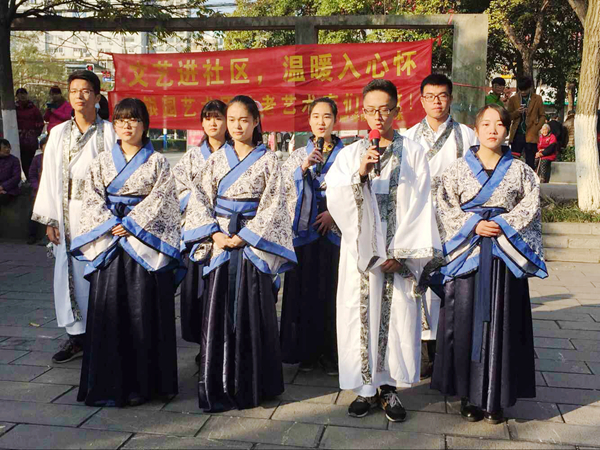 为了弘扬 “奉献、友爱、互助、进步”的志愿精神,在校团委和青年志愿者联合会的号召下,我校各系志愿者服务队相继开展了以“感恩、感动、感激、回报”为主题的艺术进社区系列活动。