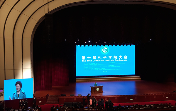 大会由教育部部长、孔子学院总部理事会副主席袁贵仁主持,中共中央政治局委员、国务院副总理、孔子学院总部理事会主席刘延东出席并作主旨演讲,她指出,2015年在中外双方共同努力下,孔子学院办学水平不断提升,运行模式日益健全,吸引力凝聚力进一步增强,在中国人民与各国人民之间架设了沟通的桥梁,撒播了友谊的种子。