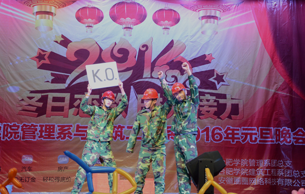 2015的尾巴尚未到达,新年的气息已悄然而至。12月11日、12日,由校中国语言文学系主办,中文系团总支学生会承办的元旦联欢晚会和管理系团总支、建筑工程系团总支联合主办,安徽圈圈网络科技有限公司协办的2016年合肥学院管理系与建筑工程系元旦晚会相继在一区致用礼堂举行。全校近千名师生到场观看,全场座无虚席。