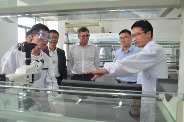 Daran nahmen unter anderem Herr Miao Qundao, Direktor des Entwicklungs- und Planungsbüros, Herr Jia Feng, Direktor des International Offices, Herr Dong Qiang, Dekan der Fakultät für Chemieingenieurwesen, Herr Hua Jianbin, Vizedirektor des Regionalentwicklungsbüros der Universität Hefei, sowie Herr Li Minghua, Projektleiter des Forschungszentrums für funktionelle Anstrichmittel teil.