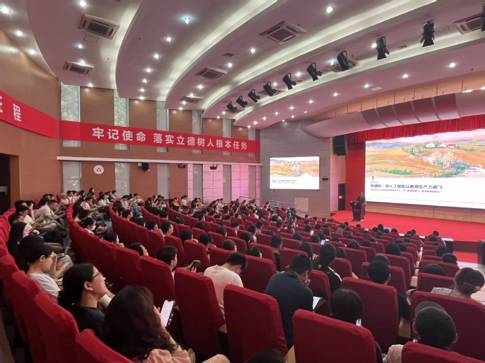 焦建利从生成式人工智能赋能教师的5种路径、用生成式AI辅助教师备课、人机智慧学习协作框架等方面,分享如何将AI有机融入教育教学,从而让教师教得更好,让学生学得更好。此次培训内容充实,教学展示生动精彩且富有激情,参训教师积极与专家开展互动交流,现场气氛热烈。